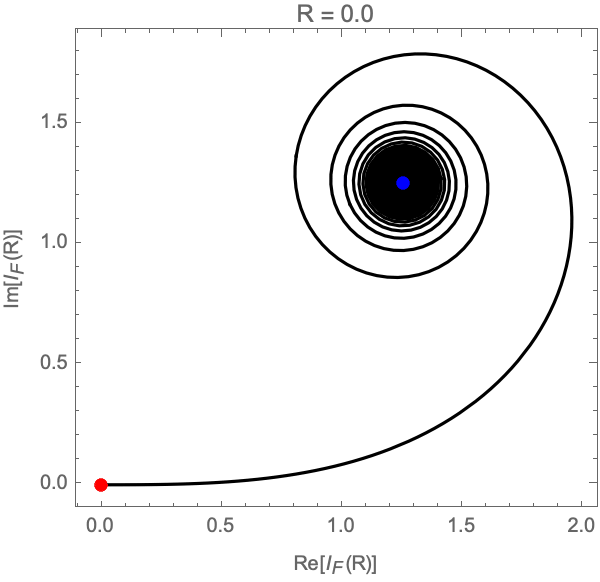 In the limit \(R \to \infty\), the partial integral \(I_F(R)\) runs over an Euler spiral in the complex plane converging to the point \((1+i) \sqrt{\pi / 2}\) (see Fig. 2).